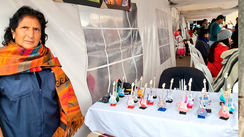 Teresa Salazar, emprendedora de Tungurahua,  cuenta que es la cuarta ocasión que participa en la feria, lo que le ha permitido dar a conocer su trabajo en madera con la elaboración de guitarras en miniatura y el enmarcado de cuadros. “Son estos espacios los que nos permiten promocionar nuestros productos y tener un ingreso económico que aporta al bienestar de nuestras familias, es por ello que siempre estoy dispuesta a participar y viajar a la provincia que nos toque», cuenta.
