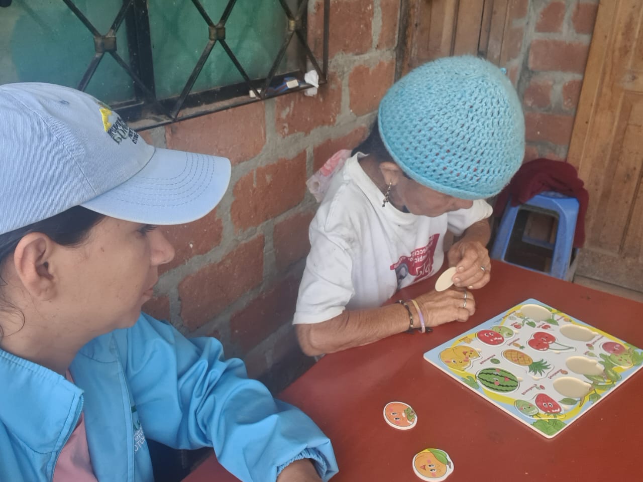 Por su parte, Luz Betancourth Castillo quien reside en el barrio Santa Rosa Alto, de la parroquia San Antonio de las Aradas, manifestó su satisfacción por la atención que recibe. “La técnica que llega a mi casa me hace armar rompecabezas con palabras, números y también pintamos…, y cuando están en la casa mi esposo y mi hija comparte con todos, estoy contenta con sus visitas y compañía”.