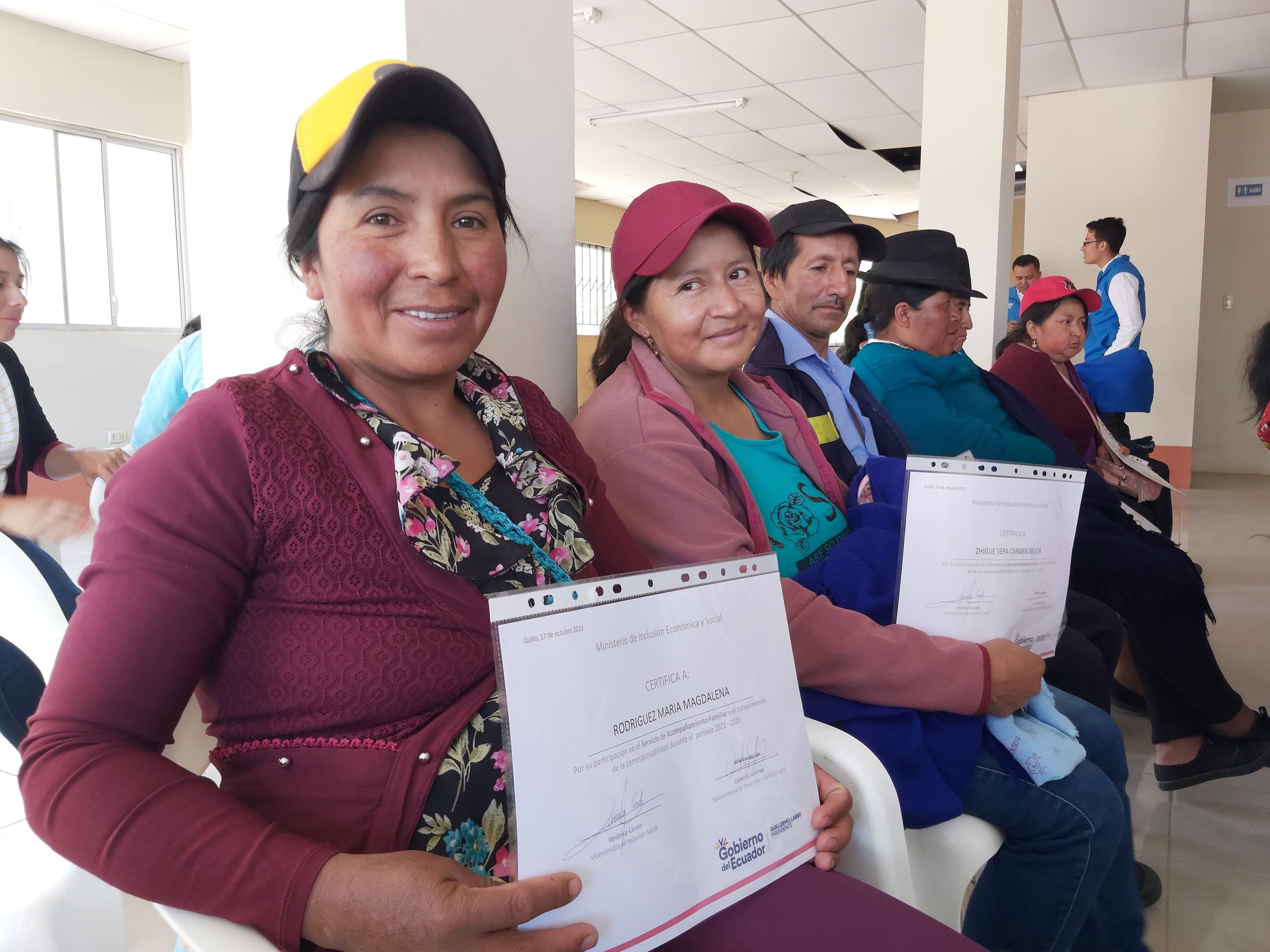 El evento simbólico se efectuó en la parroquia Guanazán, con la participación de autoridades del Ministerio, actores locales y usuarios del BDH Variable, quienes recibieron un certificado por su participación y corresponsabilidad demostrados durante el acompañamiento.