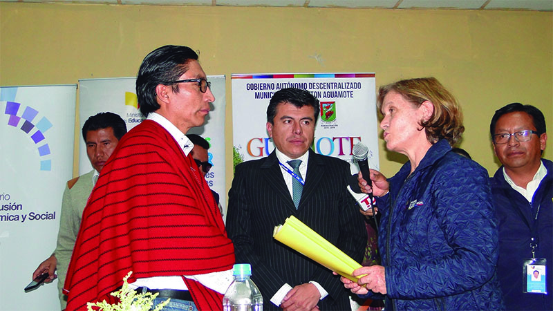 7066 Lucía Van Isschot, Directora de Centros Infantiles del MIES, entrega el Acta de Misión Ternura al alcalde de Guamote, Luis Chuquimarca.