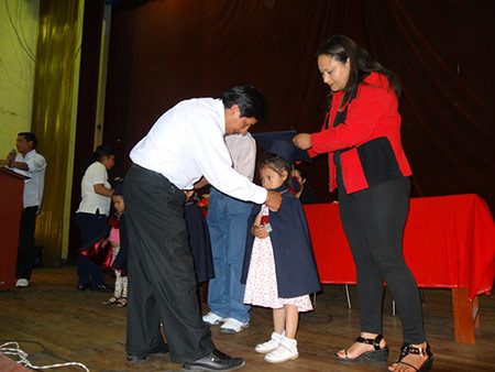 Finalmente, cada uno de los padres de familia colocó la capa, y el birrete a su ‘retoño’, recibiendo además un certificado que le acredita al menor haber culminado con éxito el programa de educación inicial.