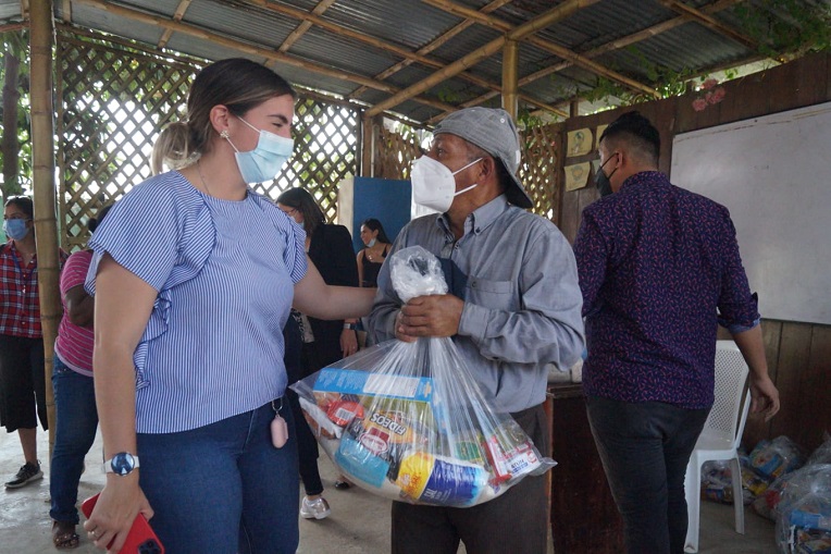 Víveres, insumos de bioseguridad, ropa y calzado fueron las donaciones que recibieron familias de Monte Sinaí, gracias a la articulación que hizo el MIES.