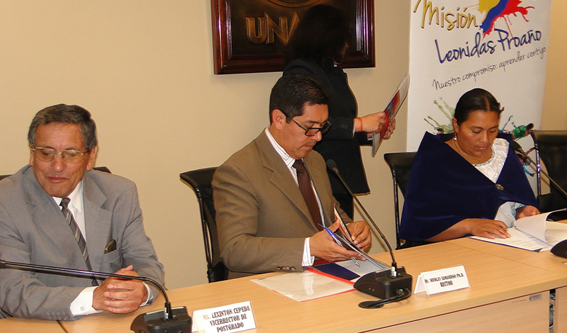 El Ministerio de Inclusión Económica y Social (MIES) Dirección Distrital Riobamba firmó tres convenios de cooperación interinstitucional con la Universidad Nacional de Chimborazo (UNACH). Con ello, 200 estudiantes de las carreras de Psicología Educativa, Educación Inicial y Educación Parvularia realizarán prácticas pre profesionales en diferentes servicios del MIES en el marco de la Misión Leonidas Proaño.
