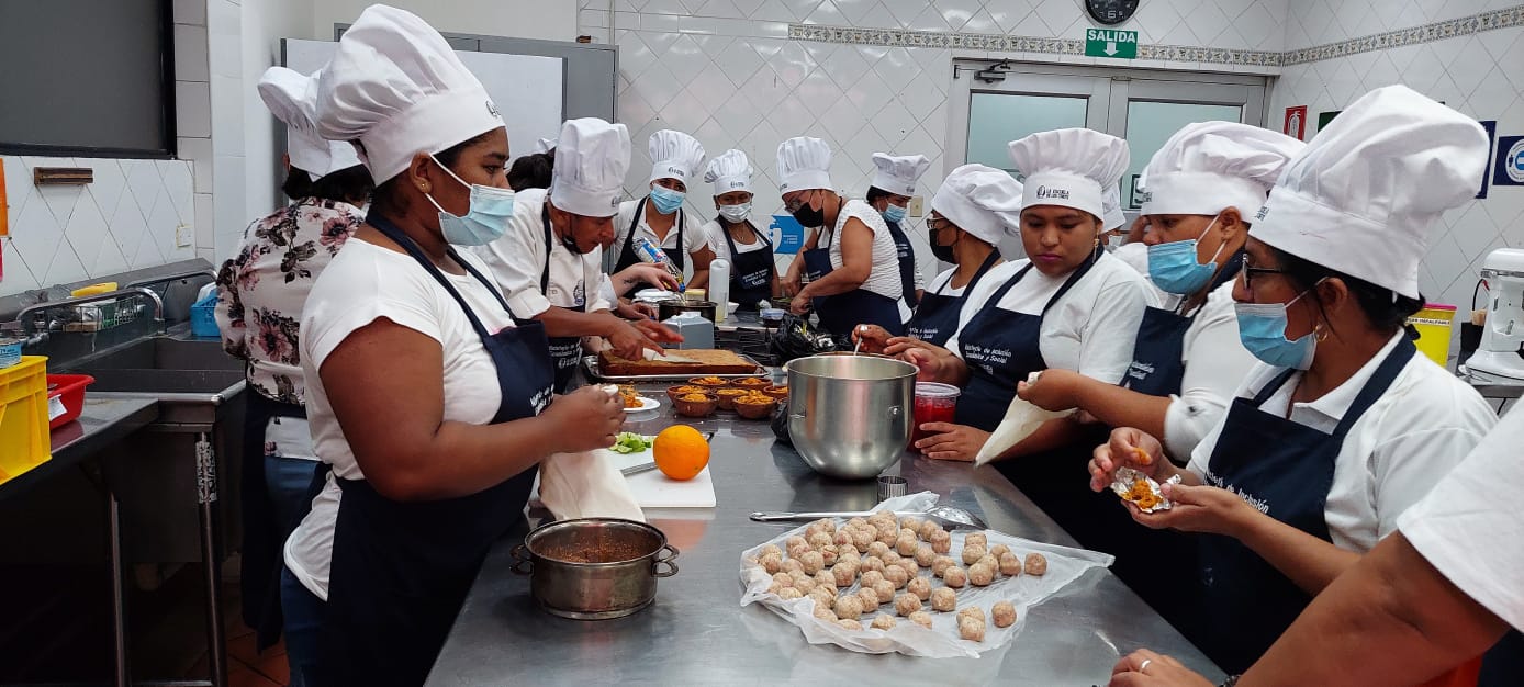 Belén Delgado, coordinadora académica de la Escuela de Los Chefs, destacó la importancia de motivar el desarrollo de las mujeres para el beneficio económico y social de cada uno de sus respectivos hogares. “Para nosotros es un gusto recibirlos, las puertas están abiertas, ya que es un placer capacitarlas a ustedes”, expresó.