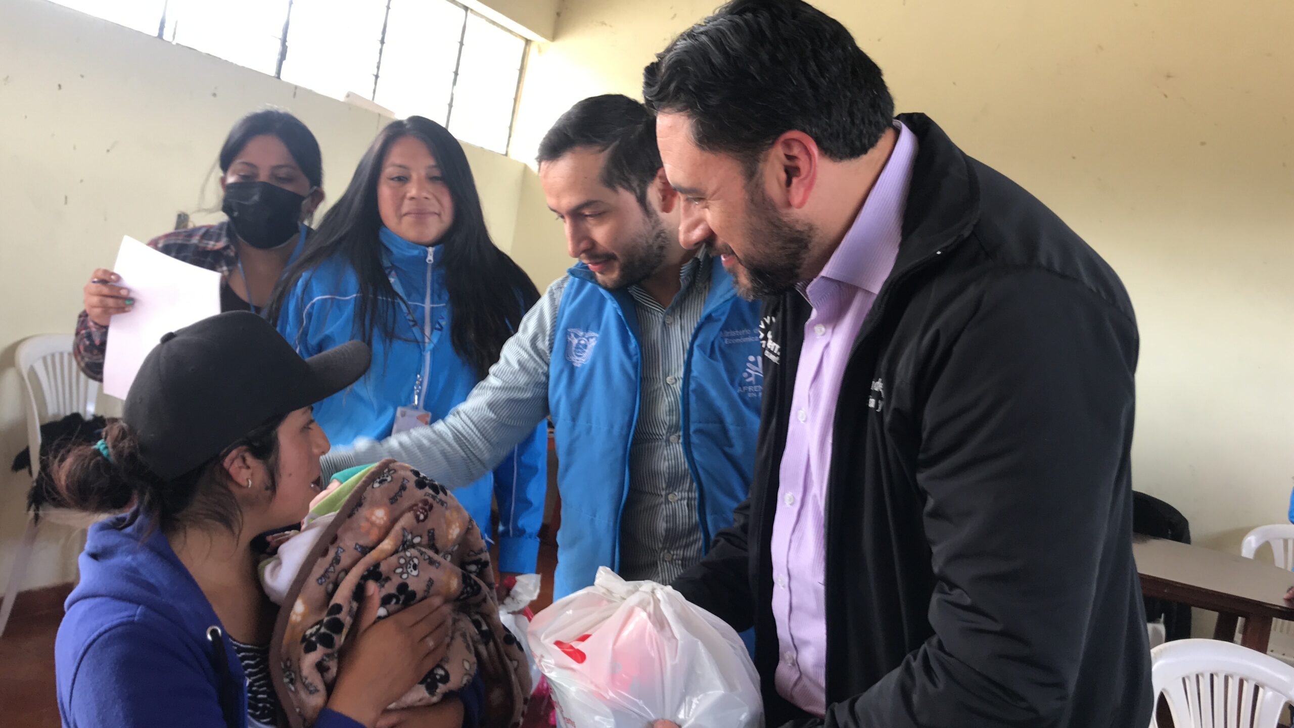 El Ministerio de Inclusión Económica y Social (MIES) del Distrito Tulcán, entregó un aporte humanitario de kits de vestimenta a 32 familias gravemente afectadas por los sismos ocurridos en la última semana en la provincia de Carchi, en el complejo volcánico Chiles -Cerro Negro. La entrega se realizó en una comisión que estuvo liderada por Mario Molina, Subsecretario de Articulación Territorial del MIES, quien estuvo presente en la reunión del COE provincial, para informar de las acciones realizadas por el MIES, el pasado viernes en las instalaciones del ECU 911 Tulcán.