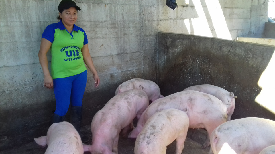 Asimismo, Rubí Espinoza menciona que implementó una pequeña granja para reproducción, cría y engorde de cerdos. “Gracias al crédito pude iniciar mi negocio, compré los cerditos, alimento y medicinas”, explica.