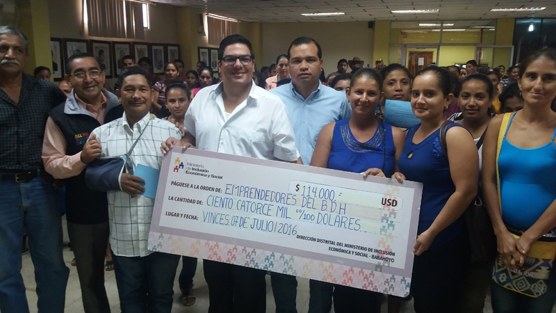 El Ministerio de Inclusión Económica y Social entregó el Crédito de Desarrollo Humano a 95 emprendedores de seis asociaciones del cantón Vinces, provincia de Los Ríos, gracias a una inversión de 114.000 dólares. La entrega simbólica se realizó durante un evento que se efectuó en el salón principal de la municipalidad de Vinces. El crédito servirá para que se realicen emprendimientos productivos que mejorarán la economía de las familias que pertenecen a esas asociaciones.