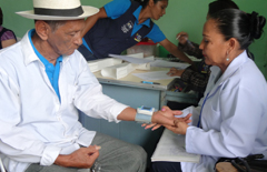 Fue el turno de Ilario Palomeque, de 79 años de edad. Él dejó la mesa y se dirigió hasta Nelly Campusano, enfermera del Dispensario Municipal, quien le tomó la presión con un tensiómetro digital y llenó los datos en la ficha médica, tal como sucede con cada adulto mayor que forma parte de la atención en modalidad diurna.