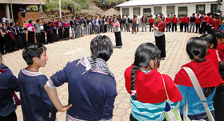 Sumak Bastidas, directora nacional de Participación del Ministerio de Inclusión Económica y Social MIES, señala que los diálogos buscan “ciudadanizar” los servicios del MIES, “que son un Derecho y no una caridad”. Ella es una joven indígena que no ha olvidado que nació en esta parroquia rural de Riobamba y por ello pidió que los diálogos con los jóvenes se desarrollen en su lugar de origen, “los ciudadanos son los titulares de Derechos y los veedores de estos servicios”.