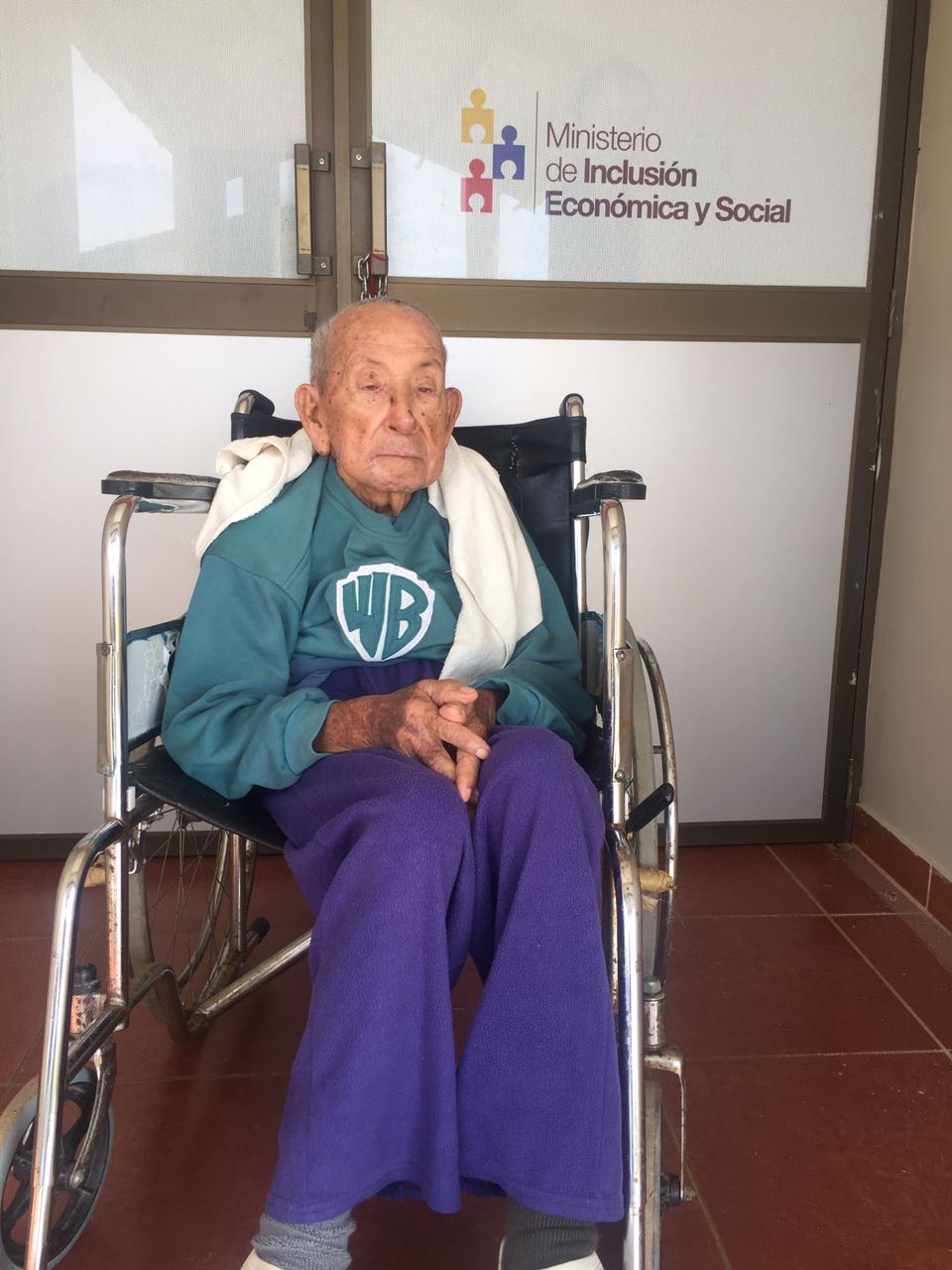Julio Reiban Lineros, un adulto mayor de 99 años y en situación de extrema pobreza, fue ingresado al centro gerontológico Zaruma donde recibirá atención integral por parte del Ministerio de Inclusión Económica y Social (MIES) con el objetivo de mejorar su calidad de vida.