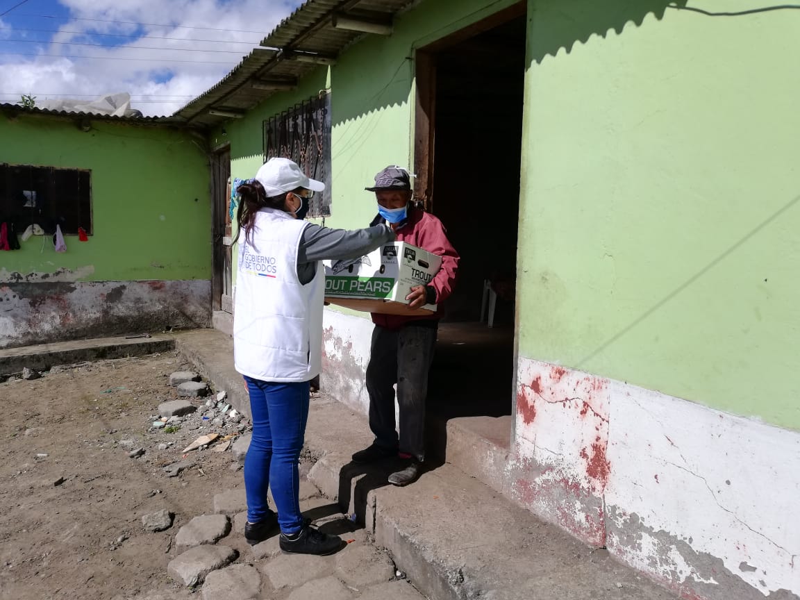 Por parte del MIES, se realizó la entrega de dos kits de alimentos con productos de primera necesidad, en el lugar pudieron constatar que vive en compañía de su hija Blanca y su nieto Darwin. Además, es beneficiario de la pensión para Adulto Mayor de 50 dólares, esta transferencia monetaria atiende a los ciudadanos mayores de 65 años en situación de vulnerabilidad y que no son afiliados a ningún tipo de seguridad social, indicó Margoth Guanotoa, técnica del MIES.