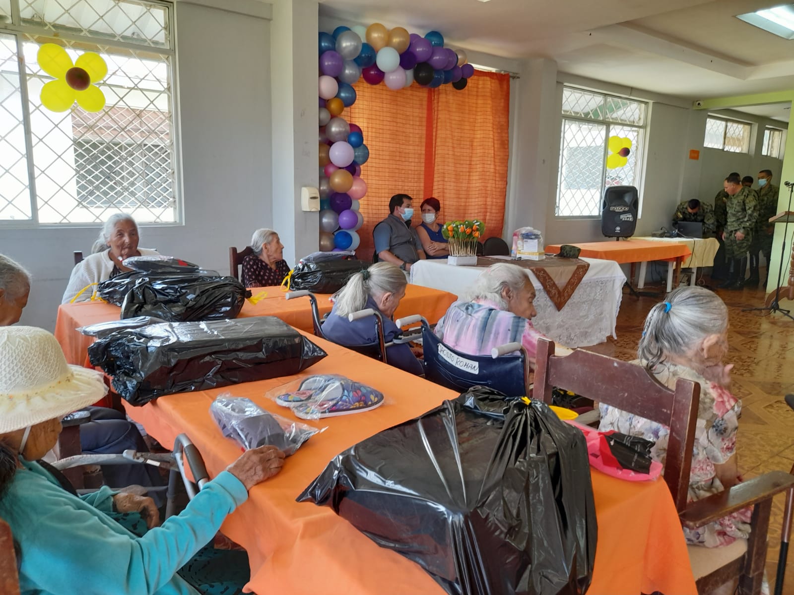 Un total de 30 adultos mayores, que reciben atención y cuidado en la modalidad residencial en el Centro gerontológico Zaruma, administrado por el Ministerio de Inclusión Económica y Social (MIES), distrito Piñas, la mañana del viernes 20 de mayo, recibieron homenaje por Día de la Madre, de parte del Grupo de Caballería Blindada N. 4 “Febres Cordero” de la parroquia La Avanzada, cantón Santa Rosa.
