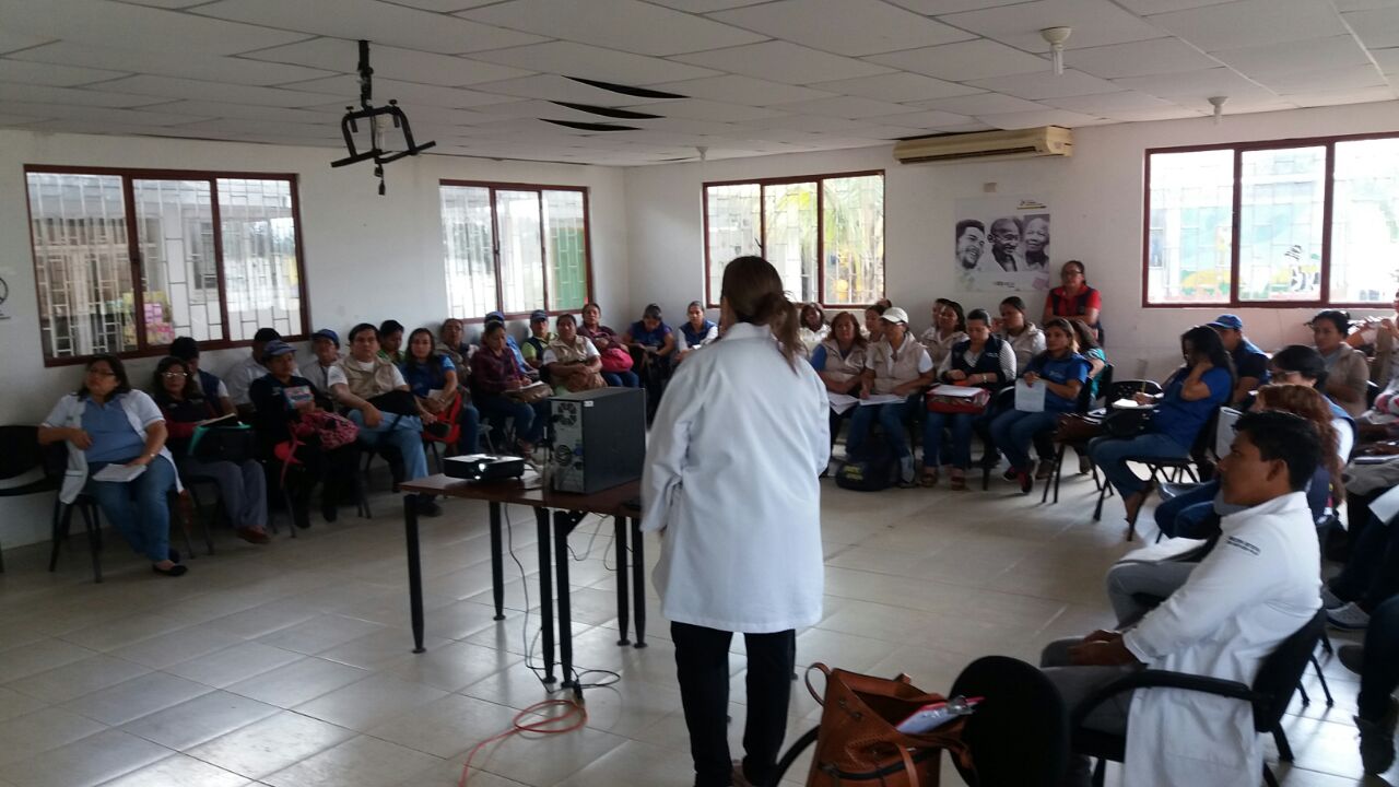 Educadoras y técnicos de desarrollo infantil del MIES reciben capacitación por parte de personal del Ministerio de Salud sobre control de talla y peso en niñas y niños.