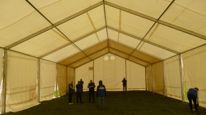 La carpa es una estructura armable, con un área de 240 metros cuadrados. El MIES gestionó la donación de la carpa a través del Programa Mundial de Alimentos de Naciones Unidas.