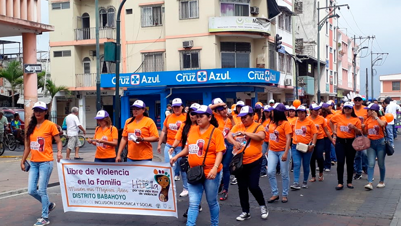 A través de consignas como «No estás sola, denuncia somos libres» decenas de mujeres usuarias de los servicios que brinda el Ministerio de Inclusión Económica y Social (MIES), participaron en la marcha por el “Día Internacional de la No violencia contra la Mujer y las Niñas” recorriendo las principales avenidas y calles de las cinco provincias que conforman la zona 5 (Los Ríos, Bolívar, Santa Elena, Galápagos y Guayas 22 cantones).