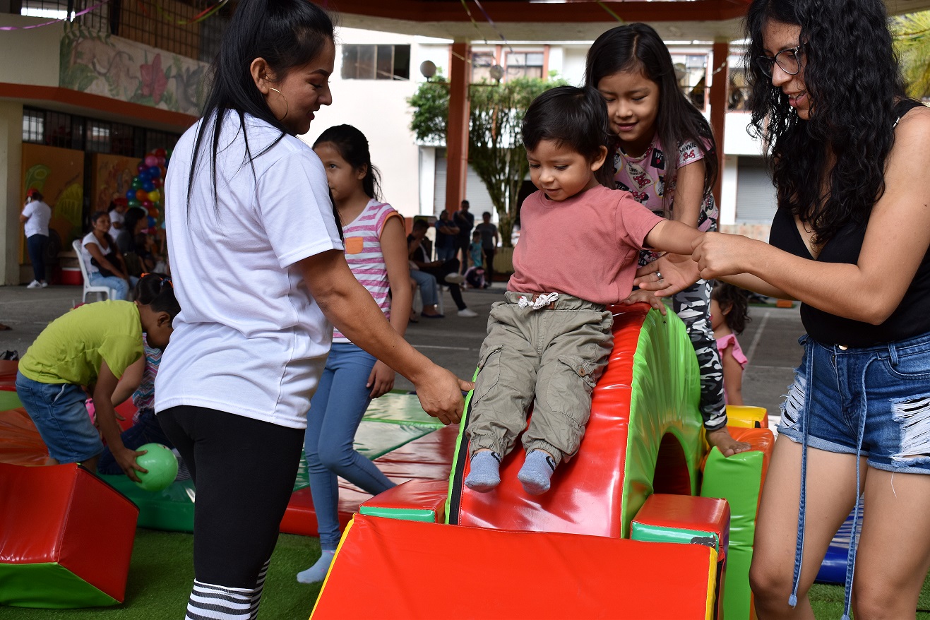 La jornada inició en Gualaquiza, donde se realizó la “Feria de la alegría”, evento organizado entre el gobierno autónomo descentralizado (GAD) cantonal y el Ministerio de Inclusión Económica y Social y contó con la participación de niñas, niños y padres de familia de los cuatros centros de desarrollo infantil (CDI) que atienden en convenio entre las dos instituciones. Allí, se realizó demostraciones de las actividades que ejecutan nuestras educadoras, como son: alimentación saludable, desarrollo de motricidad fina y gruesa y actividades lúdicas.