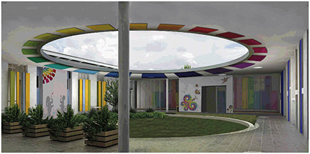 En centro infantil contará con áreas de recreación, aprendizaje, enfermería, comedor y baños acorde a las edades de los niños, en cada salón se implementará espacios de teatro, música, expresión corporal, área lúdica de comunicación y lenguaje, mientras que en el exterior habrá juegos infantiles.