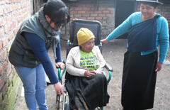 En la comunidad de Cuatro Esquinas se entregó una silla de ruedas a una adulta mayor con discapacidad física e intelectual que vive bajo los cuidados y atención de su hermana Margarita Guamán. Una entrega similar se efectuó en la comunidad de San Rafael de Chiquipoglyo a Hortensia Campoverde, una adulta mayor de 88 años de edad.