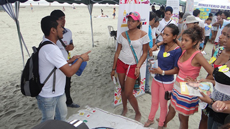La caravana llegó a las playas con mensajes como “queremos que nuestros hijos, hijas vivan libres de estereotipos”; “Infórmate, decídete y protégete”, los stands presentaron alternativas a los asistentes en temas de sexualidad, equidad de género y métodos anticonceptivos. El MIES, Coordinación Zona 1 (Carchi, Esmeraldas, Imbabura, Sucumbíos), presentó en uno de sus stands la estación “el camino de la protección”, que busca generar un espacio de reflexión en los y las jóvenes sobre los mitos que se tejen en torno a la sexualidad. Además, participaron a través de juegos interactivos, preguntas y respuestas.
