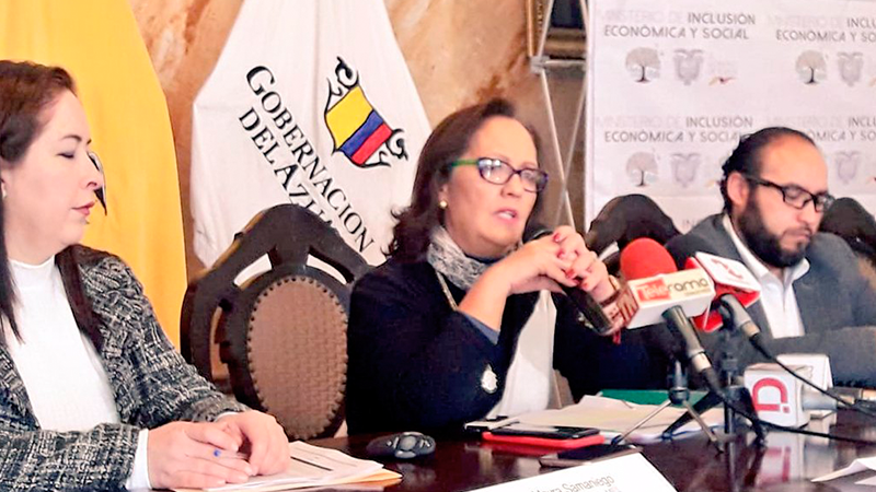 La ministra de Inclusión Económica y Social, Berenice Cordero, realizó este jueves 17 de enero, un conversatorio con los medios de comunicación, en la ciudad de Cuenca, en donde dio a conocer sobre la entrega de bonos y pensiones que realiza esta cartera de Estado a las personas en situación de pobreza y pobreza extrema, de acuerdo al Registro Social que se realiza periódicamente como parte de la política de justicia social para llegar con los servicios y bonos, como medidas de protección social mínima, a quienes realmente lo necesitan.