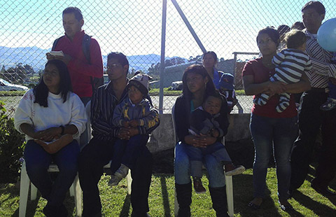 Madres y padres de familia acompañaron a sus hijas e hijos a la reapertura del CIBV Gotitas de Amor, en el barrio Loreto de la ciudad de Sangolquí.