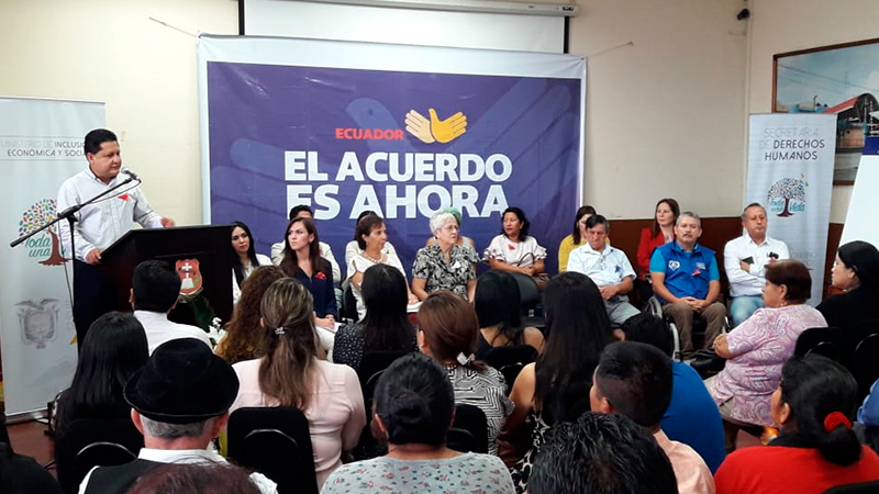 El encuentro se desarrolló en la ciudad de Macas, el martes 11 de junio del 2019 liderado por el Ministerio de Inclusión Económica y Social (MIES) y la Secretaría de Derechos Humanos. De este modo, el Gobierno Nacional promueve a través del Acuerdo 2030 el trabajo conjunto entre autoridades, academia, organizaciones sociales, Gobiernos Autónomos Descentralizados y ciudadanía en general, para establecer metas y compromisos a corto, mediano y largo plazo encaminados a prevenir y erradicar todo tipo de violencias, con énfasis en los grupos de atención prioritaria.