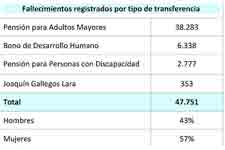 Desde octubre del 2009 hasta septiembre de 2012, se han proporcionado 47 751 servicios exequiales correspondientes al subprograma de Cobertura de Protección Familiar (CPF). Este mecanismo de protección se activa en caso de fallecimiento y está dirigido a las personas y a las familias que reciben el Bono de Desarrollo Humano, Pensión para Adultos Mayores, Pensión para Personas con Discapacidad y el Bono Joaquín Gallegos Lara, este servicio consta de servicios exequiales y seguro de vida. Como parte de la cobertura, también se han entregado 41 435 cheques correspondientes a la póliza de seguro de vida.