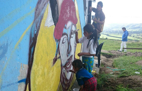 Por otra parte, Isaac Gómez, estudiante de Diseño Gráfico, sostuvo que el mural servirá para plasmar la cotidianidad de la comunidad. «Se trata de llegar a la psicología de las personas para que regresen a su identidad y cotidianidad, para que cuando vean reflejada su cosmovisión, su vida, ellos (la comunidad) piensen que tienen la tierra, que tienen las vacas, que tienen sus casas que son más importantes que ir a mendigar y exponer sus vidas en la carretera» dijo Isaac. Además expresó su alegría de que niñas y niños se hayan integrado a la actividad.