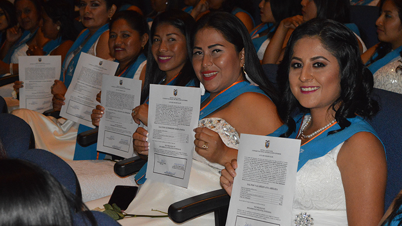 Jessica Yumaglla, educadora de la modalidad CNH, una de las graduadas durante esta jornada en Guayaquil, destacó que para alcanzar esta meta debió vencer muchos obstáculos. “Nunca pensé que tenía una vocación para enseñar a los más pequeños, sin embargo estoy agradecida con los docentes, he logrado mejorar en mi trabajo en el área de estimulación, he adquirido nuevos conocimientos y estoy muy contenta de haber terminado mis estudios”, señaló.