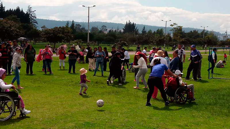 Posteriormente, se trasladó a la Cruz del Papa Francisco, en el parque Bicentenario al norte de Quito. En este lugar se desarrolló la “Ginkana Diversidad Somos Todos” en donde más de 400 usuarias y usuarios de los servicios para personas con discapacidad del MIES junto a sus familias, interacturaron en actividades de pintura, carreras con obstáculos, pruebas de trabajo en equipo, entre otros.