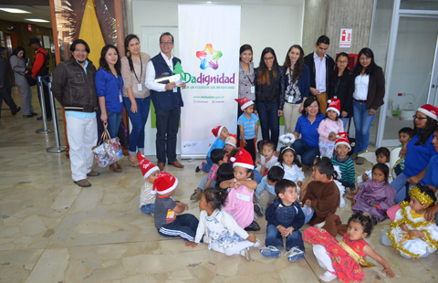 Cantando villancicos y disfrazados de pastores, ángeles, reyes magos, la virgen María, José, entre otros; niñas y niños que reciben atención y servicio en los Centros Infantiles del Buen Vivir (CIBV) “Manuela Cañizares” y “San Francisco de Quito” llevaron una posada navideña a funcionarios del Ministerio de Agricultura, Ganadería, Acuacultura y Pesca (MAGAP) y a los integrantes del Ballet Nacional de Ecuador. Mientras que las coordinadoras y educadoras de los centros infantiles sensibilizaron sobre la campaña Da Dignidad, que es impulsada por el Ministerio de Inclusión Económica y Social (MIES).
