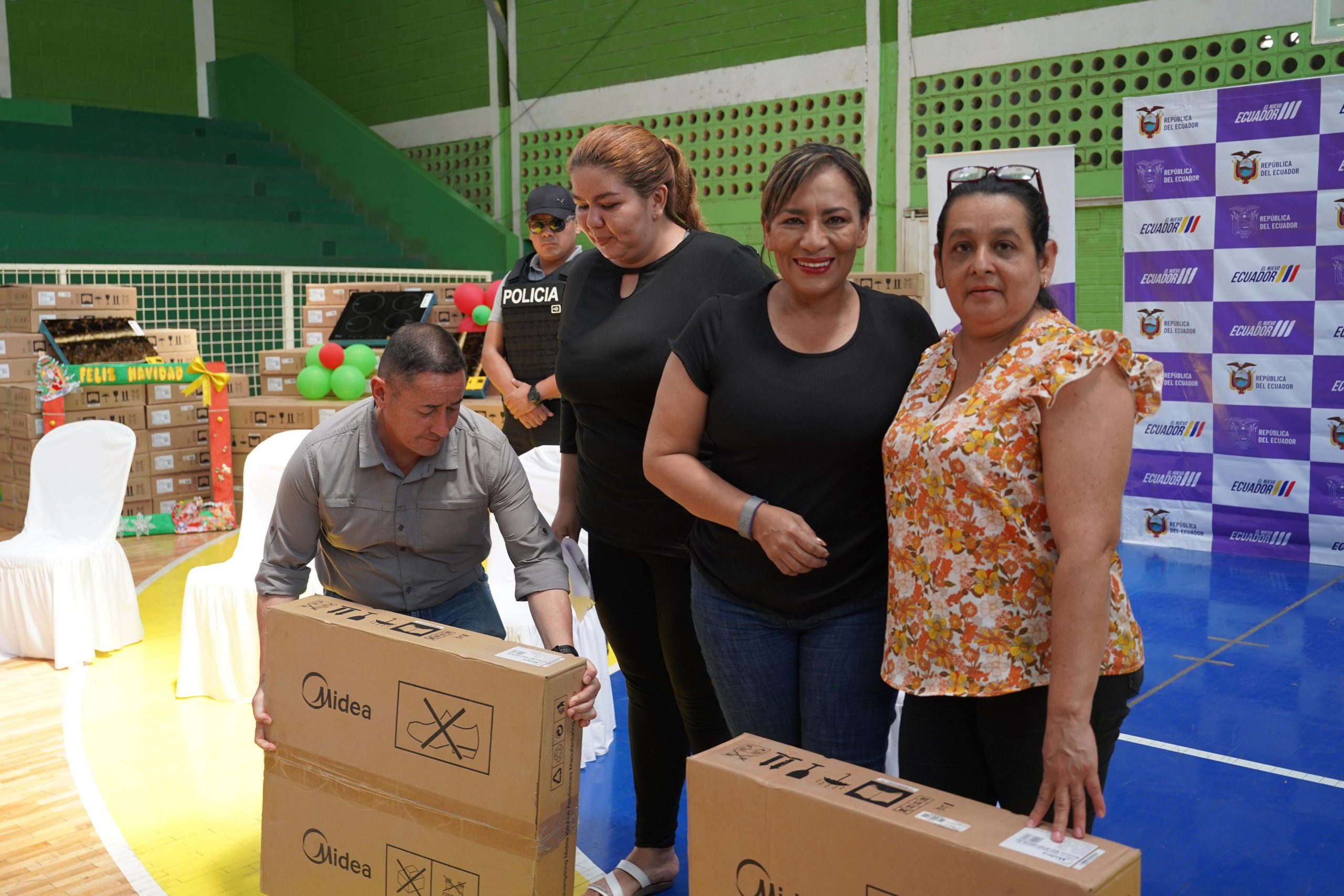 Una de las beneficiadas fue Alba Bone, quien recibió “muy feliz” su cocina. Ella llegó desde el cantón Vinces para recibirla y agradeció el apoyo que están recibiendo permanentemente miles de familias por parte del Gobierno Nacional y el presidente Daniel Noboa.
