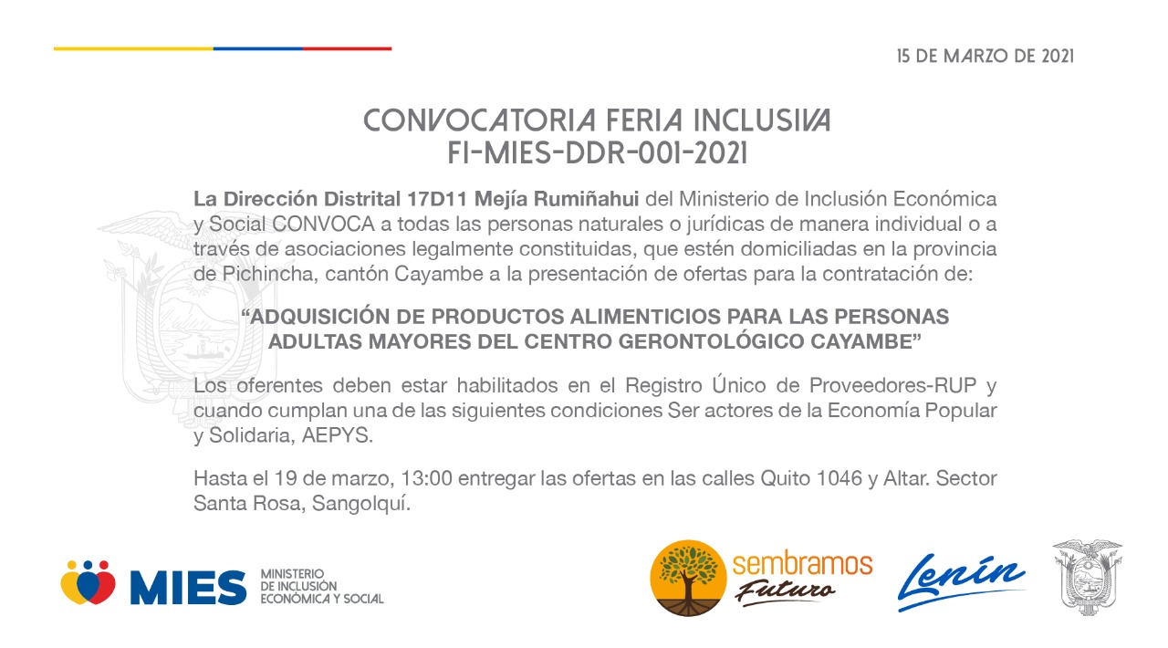 > CONVOCATORIA FERIA INCLUSIVA DIRECCIÓN DISTRITAL MEJÍA RUMIÑAHUI