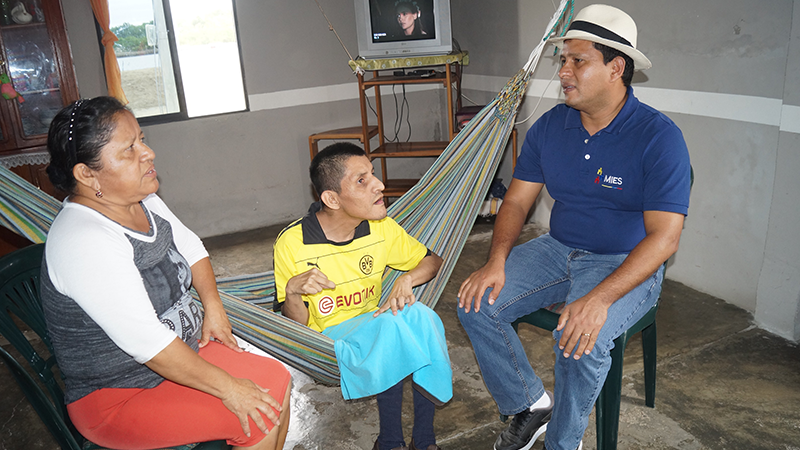 En la misma comunidad, el equipo del MIES estuvo en el hogar Gonzabay-Lino, donde Magner, con 36 años de edad recibe el Bono Joaquín Gallegos Lara de 240 dólares, debido a la discapacidad intelectual severa del 87 %. Glenda Lino, su madre y cuidadora, expresó que: “Para nosotros el bono representa una gran ayuda, sobre todo para solventar los gastos de su alimentación y medicamentos; me siento bien cuidando a mi hijo, es mi responsabilidad”.