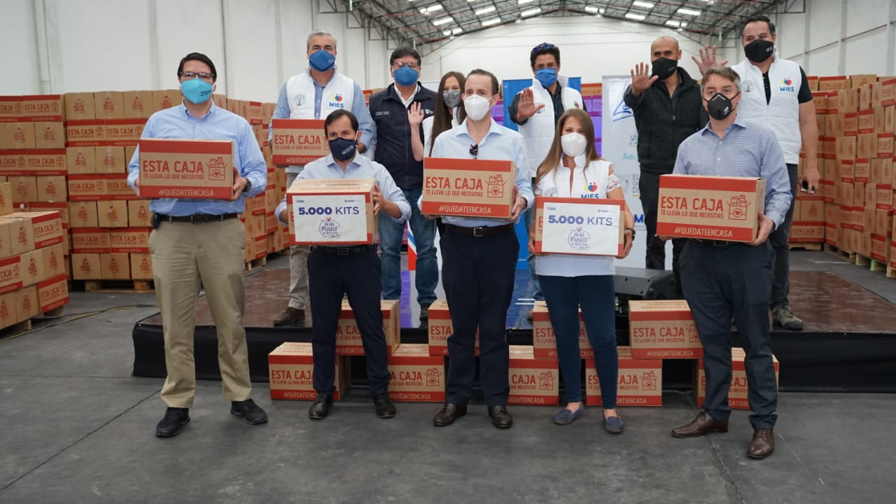 despachaban los kits a todas las provincias del país y contó con la presencia del Ministro de Inclusión Económica y Social, Iván Granda, y de forma virtual de Pedro Crespo, presidente de la Fundación Donation, quienes estuvieron acompañados de forma presencial y virtual con alrededor de 30 representantes de las empresas, instituciones y ciudadanía que fueron donantes.