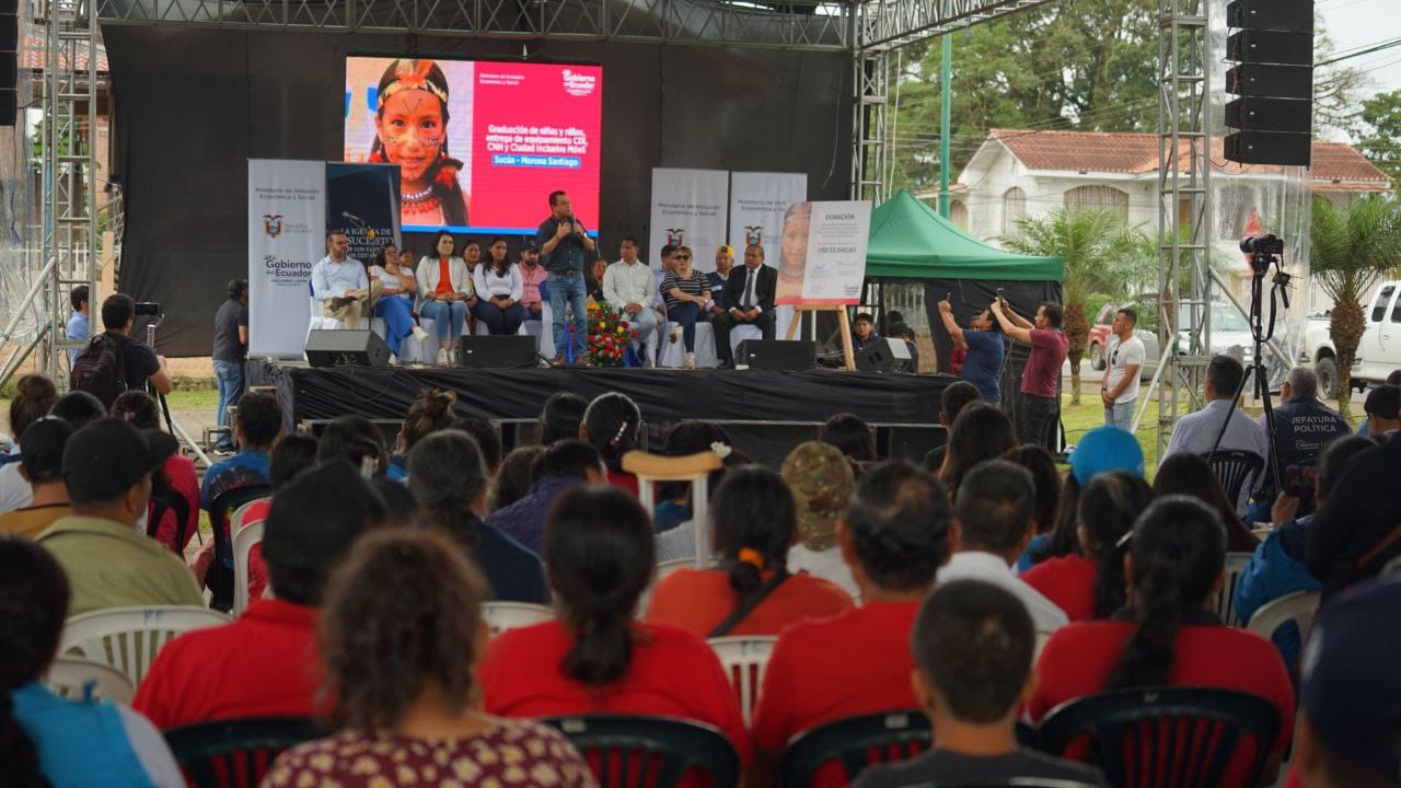 Durante este evento, el Ministro también entregó certificados de graduación a niñas y niños que culminaron su proceso de formación en primera infancia a través de los servicios de desarrollo infantil del MIES. Durante este mes y como parte del régimen Sierra-Amazonía, un total 1.844 niñas y niños de esta provincia egresaron de los CDI y las unidades CNH; mientras que cerca de 200 infantes lo hicieron en el cantón Sucúa.