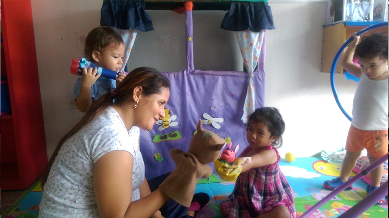 Magdalena Yenchong, coordinadora de este centro infantil, asegura que la estimulación es parte de las actividades diarias que realizan con niñas y niños. Dijo que en el CDI cada juego que se planifica tiene un objetivo y está diseñado de acuerdo a cada etapa del crecimiento. Por ejemplo, a través del área de lenguaje, que está adecuada con títeres e ilustraciones, los infantes pueden desarrollar el lenguaje, asociando una palabra con las dinámicas que se realizan, a través de la manipulación de los muñecos y dibujos, que se encuentran en esta área.