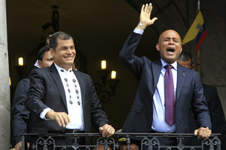 Michel Martelly, presidente haitiano, se unió a la felicitación de varios líderes latinoamericanos, que felicitaron al presidente de Ecuador, Rafael Correa Delgado, por su reelección en las elecciones Domingo, 17 de febrero 2013.
