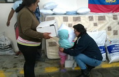 Elba Gámez, directora del Distrito Quito Norte MIES, recalcó: “Estos kits no son el único apoyo que recibirán estas familias, también daremos seguimiento al caso brindando apoyo psicológico y social a los damnificados y damnificadas.”