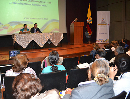 En el encuentro denominado “Trabajando Juntos por la Inclusión Social”, estuvieron representantes de unas 100 organizaciones entre las que mantienen convenios con el MIES, y además aquellas organizaciones emblemáticas con vocación de trabajo para las áreas sociales, con buenas prácticas y que pueden colaborar con este Ministerio para cubrir brechas que se identifiquen en los servicios institucionales.
