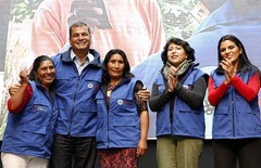 (Foto: Representantes de la Red Nacional de Recicladores del Ecuador (RENAREC) junto a Rafael Correa, Betty Tola y Lorena Tapia)