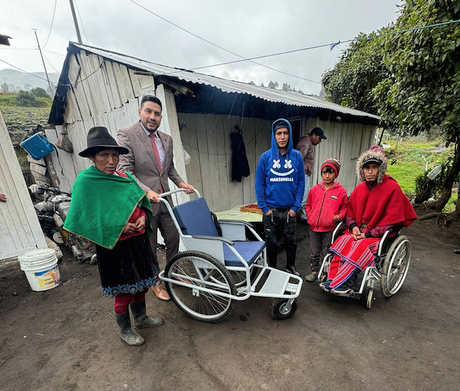 Pedro Chucuri, quien tiene discapacidad física, recibió una silla de ruedas por parte de esta cartera de Estado. La entrega de esta ayuda técnica la efectuó el director distrital del MIES, Jorse Rassa, quien se trasladó hasta la parroquia Cebadas para también constatar la atención que recibe esta familia.