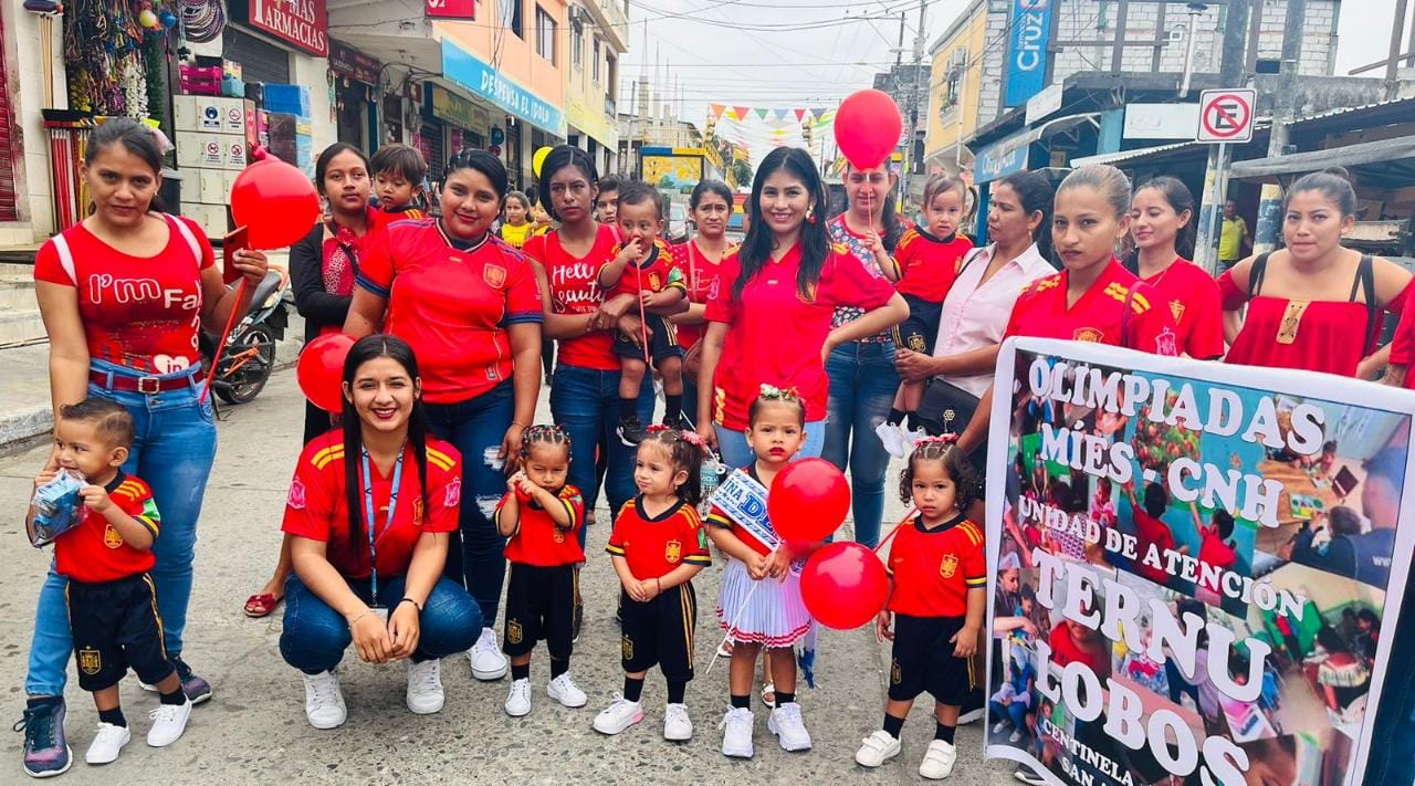 Alrededor de 600 personas acudieron está mañana al Estadio de Colimes, en la provincia del Guayas, para participar en la Olimpiada “Creciendo Saludable”, que promueve el Ministerio de Inclusión Económica y Social (MIES) con las familias usuarias de sus servicios de desarrollo infantil. El evento es parte de las estrategias que promueven las educadoras y educadores para fortalecer la corresponsabilidad y los vínculos afectivos entre padres e hijos.