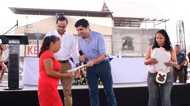 Durante el evento, el segundo mandatario junto al gobernador de Guayas, Pedro Pablo Duart, compartieron con las ciudadanas Silvia Antepara y Luz Remache, la buena noticia de que actualmente forman parte del grupo de beneficiaras que reciben el Bono de Desarrollo Humano, tal como otras 6 mil amas de casa del cantón Durán para quienes se invierte más de 3 millones de dólares anuales.
