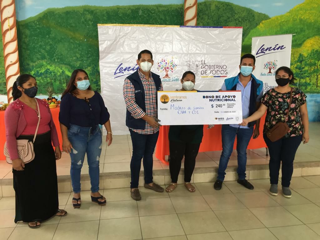 Para alcanzar este objetivo, el MIES ha destinado un aporte económico de $ 240 denominado Bono de Apoyo Nutricional, que desde el Gobierno Nacional se financia con recursos que provienen del Programa Mundial de Alimentos (PMA) y que se entregará únicamente en el mes de octubre para aquellas familias con mayor afectación durante la pandemia del Covid-19.