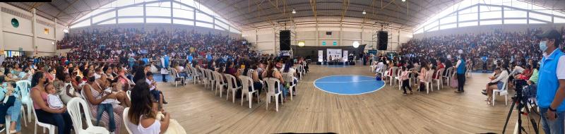 Este miércoles, al Coliseo Walter Sacco, del cantón Machala, acudieron niñas, niños y padres de familia de 69 unidades “Creciendo con Nuestros Hijos” y del Centro de Desarrollo Infantil “Chilalitos”, para participar en el evento de cierre de ciclo. Juan Carlos Moreno, coordinador del MIES en la Zona 7, destacó el trabajo de las educadoras de los CDI y CNH que iniciaron sus actividades presenciales en octubre y en febrero, respectivamente. “La atención integral a nuestra niñez jamás se vio interrumpida y, que bueno tener este tipo de espacios para felicitar, no solo a nuestros equipos, sino también a las familias que han demostrado su corresponsabilidad en el proceso de cuidado y atención a los infantes”.