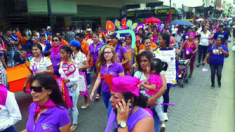 Alrededor de 2.500 mujeres de la provincia de El Oro pintaron de Lila, violeta y naranja las principales calles de Machala durante la marcha organizada por el Ministerio de Inclusión Económica y Social (MIES) denominada “Dejando Huellas por nuestros Derechos”, que se realizó para conmemorar el Día Internacional de la Mujer.