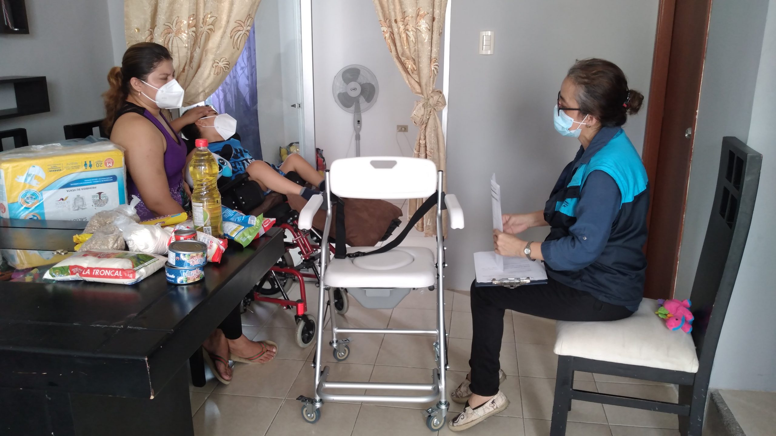 Con ese propósito, una brigada de ambas entidades estuvo en el sector Nuevos Ceibos, en el noroeste de Guayaquil, en el hogar de Roger, un niño de 8 años de edad con el 81% de discapacidad física. El MIES hizo la entrega de un kit de alimentos y pañales, mientras que el MSP le proporcionó una silla de baño y evacuación. Otro kit de alimentos también recibió Gabriela Guanoluisa, madre de una menor de 11 años que tiene el 89% de discapacidad intelectual.