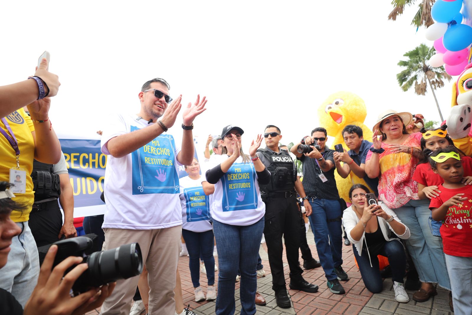 La explanada del Centro Cívico, en la ciudad de Guayaquil, fue el escenario en donde el Ministerio de Inclusión Económica y Social (MIES) llevó a cabo un evento de sensibilización denominado “Mis Derechos Restituidos”, para conmemorar el Día Mundial Contra el Trabajo Infantil. La jornada contó con la participación de más de 2.000 personas, entre usuarios de los servicios que brinda esta cartera de Estado y sus familias, autoridades, estudiantes de varias unidades educativas y ciudadanía en general.