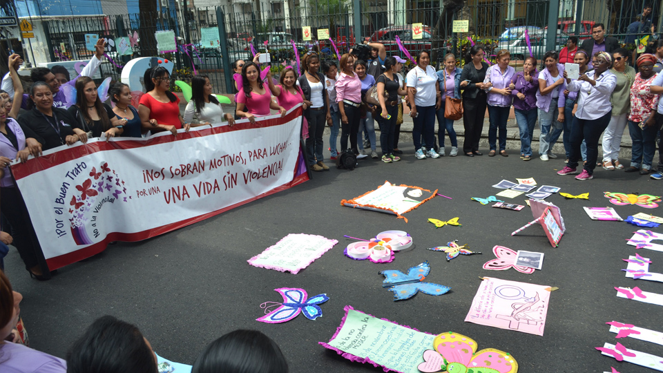Unas 200 mujeres vinculadas a varios programas del Ministerio de Inclusión Económica y Social (MIES) y a organizaciones sociales de Guayaquil, se tomaron una de las calles aledañas al parque de La Madre, ubicado en el centro de la ciudad, para conmemorar este 25 de noviembre el Día Internacional de la Eliminación de la Violencia contra la Mujer.